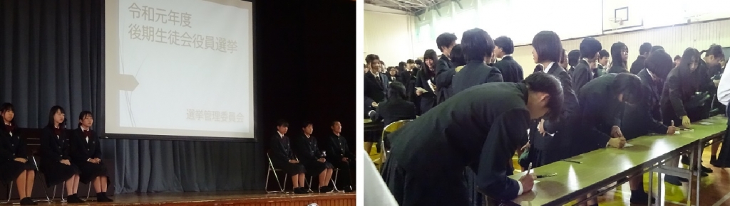 「表彰伝達式」および「令和元年度 後期生徒会役員選挙立会演説会・投開票」