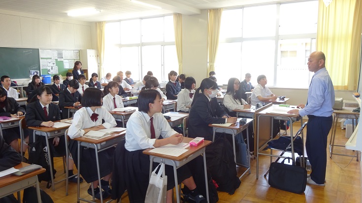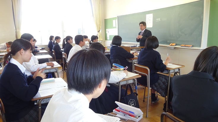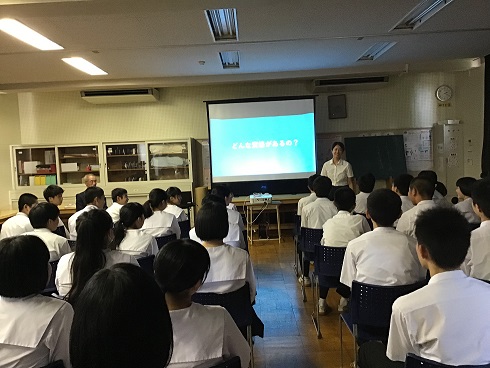 ※本日、総合的な学習の時間の一環として、2年生を対象に職業講話が行われ、各教室で講師の方より講演いただきました。生徒達はメモをとったり、目を輝かせながら話に耳を傾けていました。