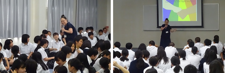 ※本日、2年生を対象に保健講話が行われました。講師に川島さんにお越しいただき、思春期の健康管理(性)について~大切なあなたのことを話そう~と題し、性感染症や性被害、DV、避妊等について講演いただきました。とっても和やかな雰囲気を演出していただきながらの講演会となりました。