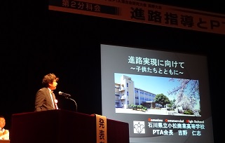 ※今年度の北信越地区高P連の研究大会に参加してきました。今回、本校は第2分科会にて「PTAと進路指導」をテーマとした内容で、吉野PTA会長が発表を行いました。PTA会長の吉野さんをはじめ、参加下さった前会長の田中さん、2日間本当にありがとうございました。
