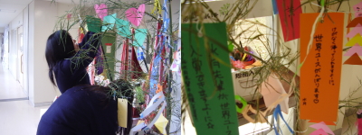 今年は250枚以上の短冊が集まり、特に生徒玄関はとても賑やかになりました。