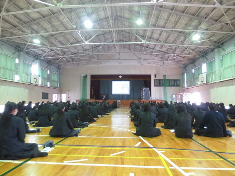 ※本日、小松警察署生活安全課の北川貴浩様、石川県教育委員会事務局学校指導課・生徒指導推進担当の本田淳也様にお越しいただき「非行防止教室」が行われました。SNS等による危険性や不良行為、いじめや命の大切さなどについて、お二方よりお話しいただきました。ようやく高校生活に慣れてきた1年生にとって、とっても有意義な講演会となりました。
