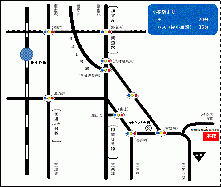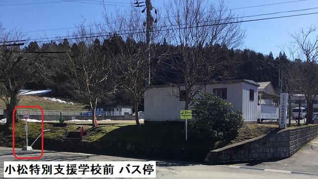 JR小松駅 ―(乗車35分)→ 小松特別支援学校前 下車 徒歩0分