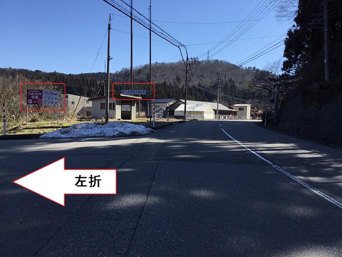 金平町を過ぎてすぐ、道路左側に「小松特別支援学校」と「うめの木学園」の標識がある三叉路(さんさろ)を左に曲がると間もなくです。