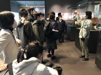 発掘品や模型、映像などの資料が展示されていました。生徒たちは、学芸員の方の