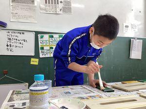 慣れない筆に苦戦しながらも、一生懸命に取り組んでいました。