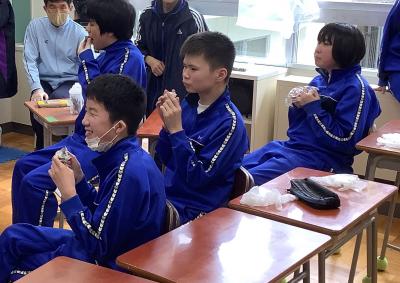 みんなでお汁粉等を食べながら、冬休みの思い出を話して、
