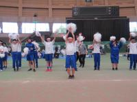 前半は赤白対抗の玉入れを行いました。通常の玉は1点、どんぐりをモチーフにした玉は5点となっており、その合計得点で勝敗を競いました。白熱した戦いが繰り広げられ、結果は白団に軍配が上がりました。後半は、全員でよさこいを踊りました。練習の成果を発揮し、3年生を中心に息の合った迫力ある踊りを見せてくれました