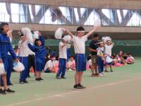 最後にイオンの黄色いレシートキャンペーンの寄贈品の紹介がありました。トンネルやボール、バドミントンのシャトルなどをいただきました。2学期から大切に使っていきたいと思います。