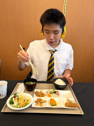 最後は「ミューレミュー」で食事でした。代表の「乾杯!」の掛け声に合わせて会食スタートです。事前学習で学んだテーブルマナーを意識し、コマトクでの思い出などを話しながら、コース料理を堪能しました。デザートプレートには、1人1人の名前を書いてくださり、みんな感激していました。大喜びで、完食した生徒がたくさんいました。