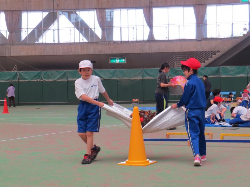 低学年はバルーンと玉はこびを行いました。曲に合わせてみんなでバルーンをゆらしたり、元気いっぱいに玉はこびをすることができました。