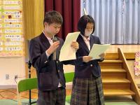 5年生は司会進行や会場設営をし、4年生は卒業生にプレゼントを渡しました。