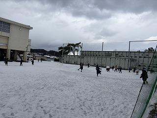 今週は、今季最強そして最長の寒波が襲来しています。ここ輪島でも、たくさんの雪がグラウンドに積もりました。お察しのとおり、子どもたちは大喜びです。休み時間になると我さきとグラウンドに飛び出してきます。休み時間が終わって、子どもたちがいなくなったグラウンドには、大きな雪玉がたくさんありました。これは、すべり台をつくろうとしたのでしょうか? 寒さをもろともせず、元気にはしゃぐ子どもたちの声が、学校中に響き渡っていました。