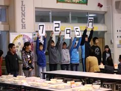 朝、全校が食堂に集まり、計算100問にとりくみます。
