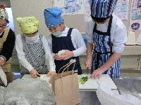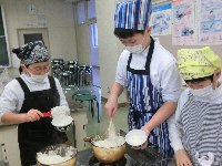 3~6年生は保護者の方と一緒におはぎを作りました。