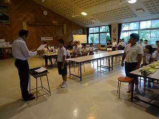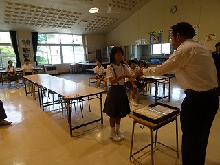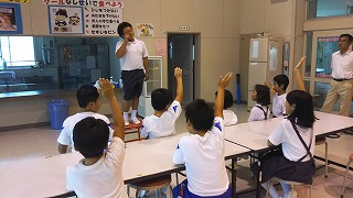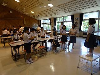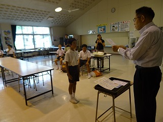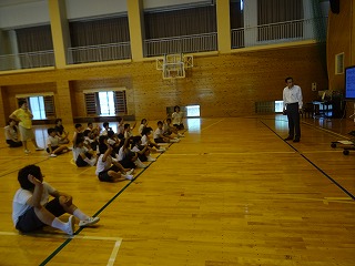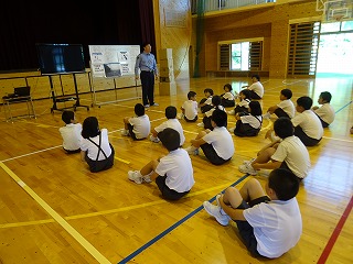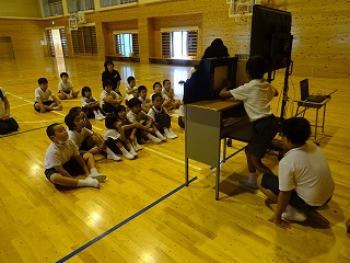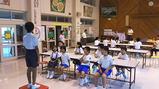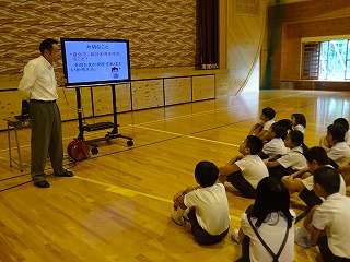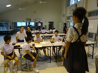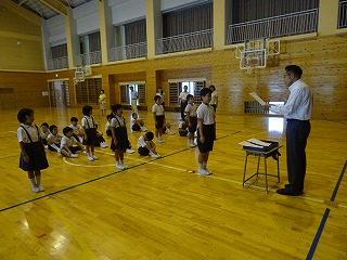 児童総会では、5・6年生から夏休みの生活やルールの確認がありました。主に3・4年生が「校区はどういう意味ですか」「家の人と行った買い物で、子どもだけでゲームセンターに行ってもいいんですか」と質問等をしていました。