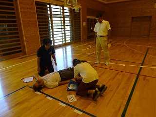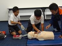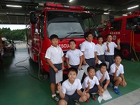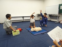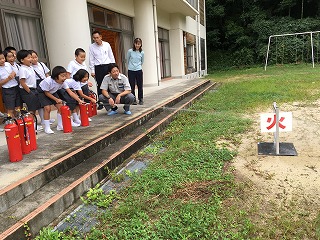 消防署の方のお話を聞き、消火器訓練をさせてもらいました。