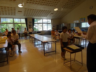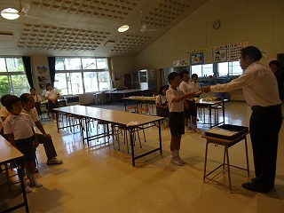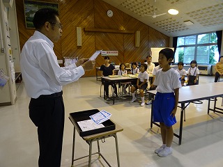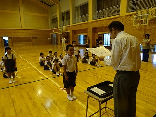 夏休みの誘惑に負けて達成できない人がたくさんいた中で、7名もの児童が表彰されました。がんばりましたね!