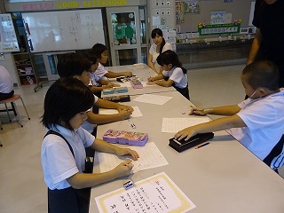 今日は月曜日に書いたほめ言葉を3年生にかけてあげました。