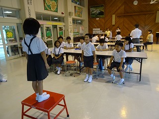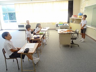スピーチタイムで5・6年生が2学期の目標を言いました。