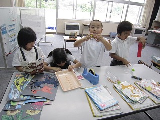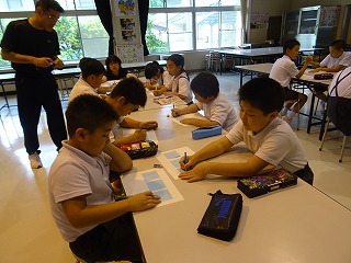 友だちが作った作品に興味津々の児童、作るのに苦労したことを先生に話したい児童が多かったです。