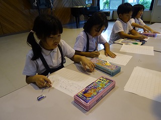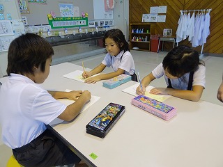 今日は、2学期にがんばりたいことを書きました。段落が変わったら、1マスあける等の表記に気をつけて書くことができました。