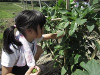 体験農園では、ナスやきゅうり、ゴーヤー、オクラがとれました。