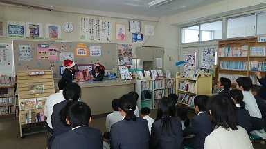 クリスマスにちなみ、キャンドルと真っ赤なキャップ・・・。いつもとちょっと違った読み聞かせ会がありました。読んでくれたのは「ゆきだるまのクリスマス」でした。