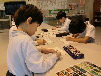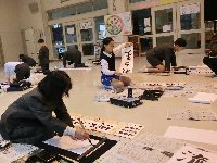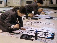 3年生は「美しい心」、4年生は「流れる星」、5年生は「進む勇気」、6年生は「新たな決意」を書きました。