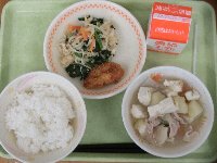 今日の給食は、ごはん・豚汁・フグのフライ・五目なます・牛乳でした。