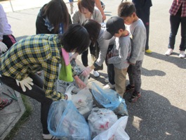 天気もよく、52名が参加して通学路のゴミを拾いました。