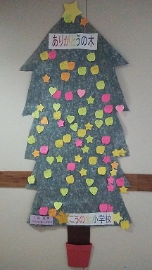 人権週間に「ありがとうの木」の取組を行いました。みんなの優しさで、ありがとうの実が一杯なりました。