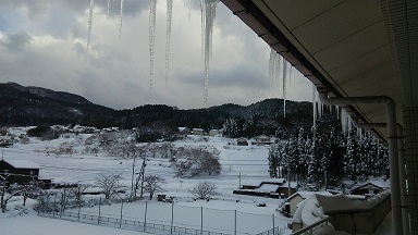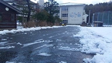暖冬から大雪へ急激な変化を見せる今年の冬・・・。海に近い、鵠巣小ですが積雪が50cm。屋根からは、1m近いつららが・・・。