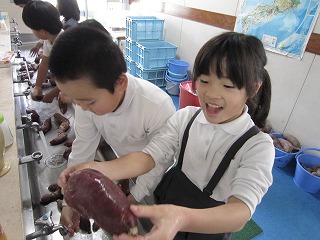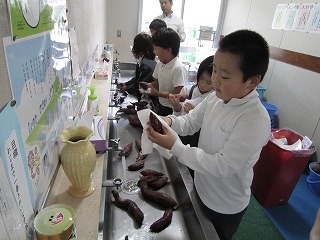 5・6年生はみどりの募金をしました。3・4年生は「猿鬼」の紙芝居をしました。3~6年生の合唱をしました。