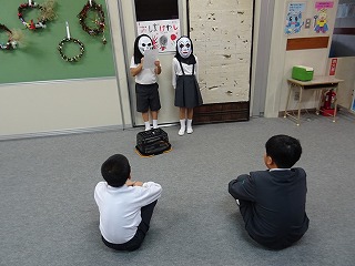 保育所さんがハロウィンの仮装をして鵠巣小学校に来てくれました。
