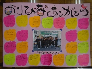 折りびなに全校で感謝のメッセージを書きました。