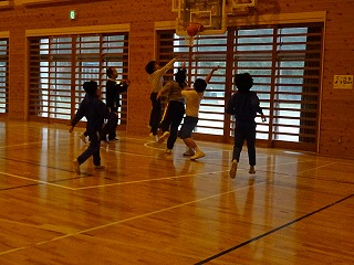 6年生が「卒業するまでに先生とバスケットボールの試合をしたい」ということで、昼休みに行いました。