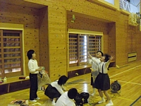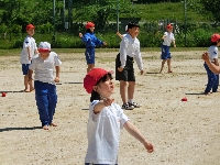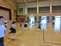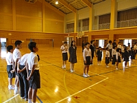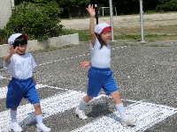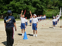 今日は初めて、運動場でよさこいと入退場の練習をしました。