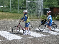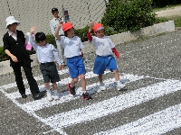 警察の方のお話を聞き、そのあと横断歩道の渡り方や自転車の乗り方などを練習しました。