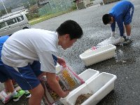河原田小学校・三井小学校の5・6年生と学校の枠を超えて合同チームを組んだり、学校ごとで試合をしたり、みんないきいきした表情でバスケットを楽しみました。