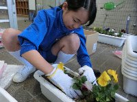 色とりどりの花をどのように植えるか悩みながら、楽しそうに植えていました。