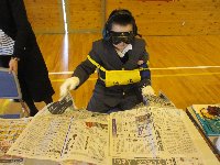 忍者学校で1・2年生が進級試験を合格するために、6年生にヒントをもらったり、6年生に松ぼっくりけん玉をしてもらったりしました。