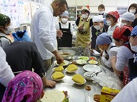 ALTのライアン先生と一緒に調理実習をしました。ライアン先生は料理が得意で、本日のメニューはメキシコ料理「タコス」でした。スパイシーな味でしたが、子どもたちは喜んで食べていました。