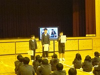 1・2年生は、忍者学校で進級試験を合格するために、6年生の成長を振り返りながらのクイズをしてくれました。大きな声で、とてもかわいかったです。