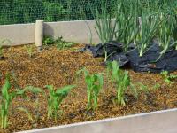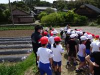 11月に植えたタマネギがすくすくと育っています。その隣には子ども達が植えた、とうもろこしやジャガイモ等も元気に生長しています。