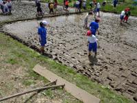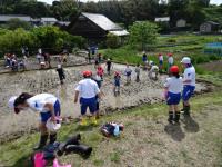 地域の方のご協力や天候に恵まれ、河井小学校のみんなと一緒に田植えを行うことができました。児童にとって、裸足で田んぼに入ることがとても新鮮だったようで、みんなとても楽しそうに田植えをしていました。今日植えた苗が大きく育ち、秋に、またみんなで稲刈りするのが楽しみですね。地域の方々には、田んぼの管理など本当にお世話になります。よろしくお願いします。