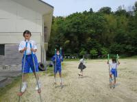 数日前から竹馬に挑戦している女児のもとに、既に乗り方をマスターしている高学年児童が加わりました。先の女児は、何度も何度も練習することで、一歩、二歩と歩みを進めています。「先生、今日は七歩いったよ」と嬉しそうに話してくれました。