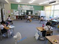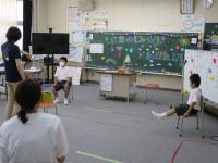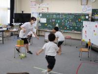 1・2年教室では、フルーツバスケットならぬ、質問バスケットをしていました。友だちのために、先生が座ろうとするのを邪魔している姿がかわいかったです。