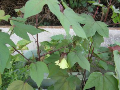 ワタの花とオクラの花は、似ています。同じアオイ科の仲間ですね。