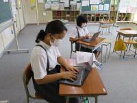 夏休み中の2回目の登校日です。残念ながら全員は揃いませんでしたが、休み時間には、先生も一緒に、みんなでドッジボールをしました。